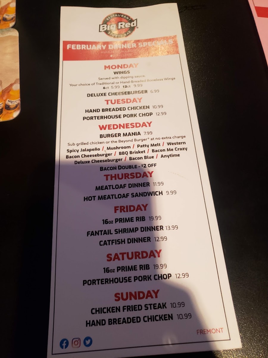 The menu at Big Red Keno Fremont offers a straightforward selection of classic sports bar and casual restaurant fare, perfect for relaxed gatherings and game-day visits. You’ll find hearty sandwiches, satisfying burgers, and shareable snacks that pair well with an evening spent watching the big game or catching up with friends over a cold drink.